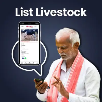 Pets Poultry Horse Sheep Goats Buffalo Aqua & Fisheries Pig Cow Buy , Sell & Trade Livestock Buy Nutritious Livestock Feed at the Best PricesBuy Online Pet Food at the Best Price Contacts Established50000+ Livestock Sold1000+ Livestock Listed10000+ Farmers Engaged5000 + Latest Listing Desi Eggs ₹20 /Piece View Berari Goat ₹410 /Kg View Black Australorp ₹380 /Piece View Sonali Murgi ₹500 /Piece View Giriraja Chicken ₹240 /Kg View Quail(बटेर) ₹75 /Piece View Prime Listing BV 300 Hen ₹210 /Piece View HF cow ₹40,000 View Black Australorp ₹380 /Piece View CBHF COW ₹120,000 View Berari Goats ₹310 /Kg View Cutting Goat ₹230 /Kg View Featured Listing CBHF COW ₹120,000 CBHF COW ₹120,000 Broiler Chicks ₹48/Piece Berari Goat ₹310/Piece Black Australorp ₹380/Piece Hampshire piglet ₹6000/Piece Popular Categories Of Livestock Cow Buffalo Poultry Goat Jersey Cow ₹ 75000 - 100000 Lakh View All Rathi Cow ₹ 55000 - 80000 Lakh View All HF Cow ₹ 55000 - 80000 Lakh View All Gir Cow ₹ 40000 - 70000 Lakh View All Sahiwal Cow ₹ 45000 - 60000 Lakh View All Sindhi Cow ₹ 35000 - 55000 Lakh View All Explore All Cow Murrah Buffalo ₹ 70000 - 100000 Lakh View All Nilli -Ravi Buffalo ₹ 65000 - 100000 Lakh View All Mehsna Buffalo ₹ 65000 - 100000 Lakh View All Surti Buffalo ₹ 65000 - 100000 Lakh View All Jaffrabadi Buffalo ₹ 65000 - 100000 Lakh View All Bhadawari Buffalo ₹ 65000 - 100000 Lakh View All Explore All Buffalo Broiler ₹ 100 Per Kg View All Sonali ₹ 230 Per Kg View All Aseel ₹ 230 Per Kg View All Kadaknath ₹ 500 /Per Piece View All Sonali ₹ 230 Per Kg View All Quail(बटेर) ₹75 /Piece View All Explore All Poultry Kota Goat Starting ₹12000 View All Beetal Goat ₹ 270 - 300/ Per Kg View All Bengal Goat Starting Price ₹13500 View All Jamunapari Goat Starting Price ₹ 8000 View All Sirohi Goat ₹ 270 Per Kg View All Sojat Goat ₹ 350 Per Kg View All Explore All Goat Pets Dogs Starting ₹ 6000 View All Cats Starting ₹ 7000 View All Small Pets Starting ₹ 400 View All Birds Starting ₹ 600 View All Aqua Pets Starting ₹ 3000 View All Livestock Feed & more View All Up to 60% off|Pets Food View All Affordable Gardening Tools View All Farm Equipment & Machinery View All Livestock Supplements & More Explore All