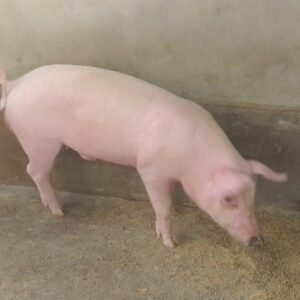 The Landrace pig is a domesticated pig breed known for its high-quality meat, excellent mothering ability, and adaptability to intensive farming systems.